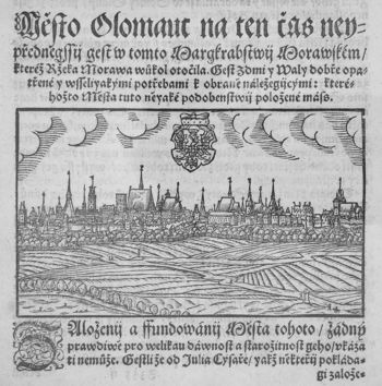 [2] Daten nach: Oldřich Juryšek: Dějiny Olomouce 1017–1920 [Geschichte der Stadt Olmütz 1017–1920]. Olomouc 2008; und: „Olomouc“. URL: cs.wikipedia.org/wiki/Olomouc (Abruf 25.08.2014).
